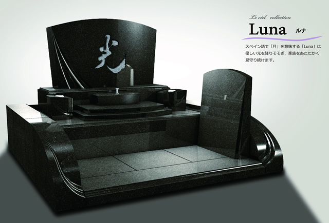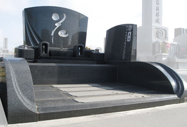 雫状の形が特徴のデザインです。使用する石材などはご希望に応じて変更することもできますのでご相談ください。